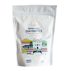 O café Terra dos Diamantes é simplesmente incrível. Para nós, acostumados a beber aquele café preto, queimado da torra, ter a oportunidade de apreciar um café limpo, doce por natureza, sem impurezas, é extraordinário. O aroma sensacional, um toque que parece achocolatado, trazem consigo uma experiência singular. Disparado o melhor contato que eu já tive com cafés até hoje.